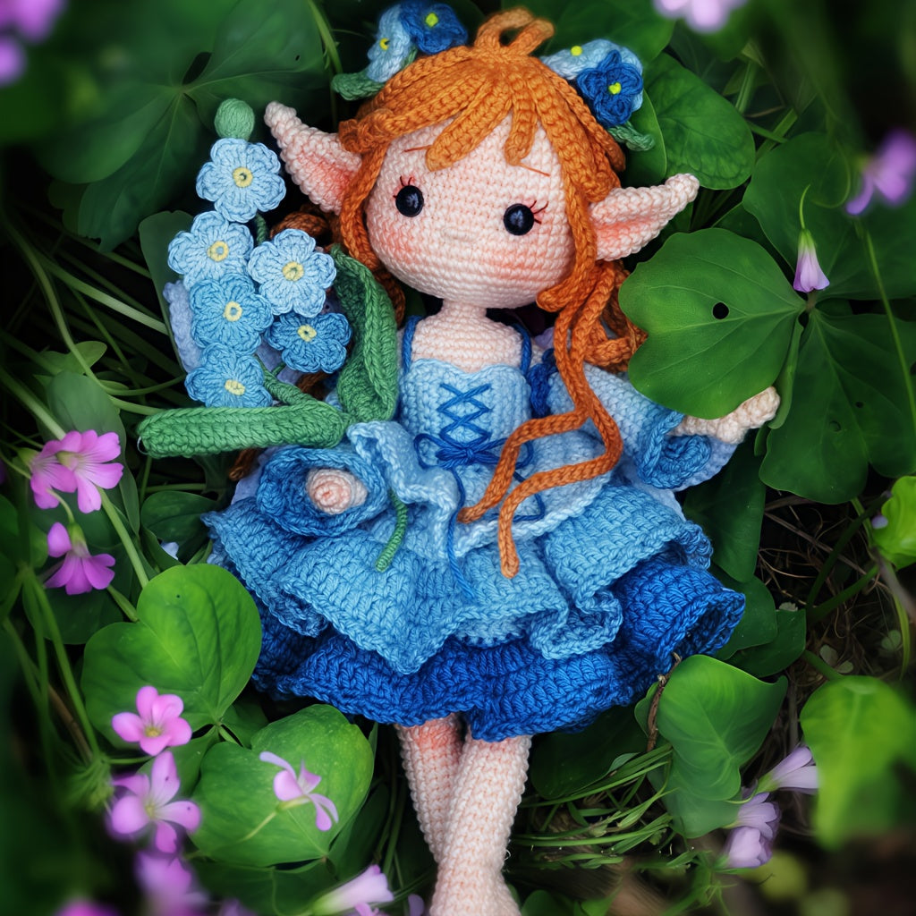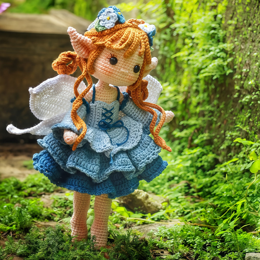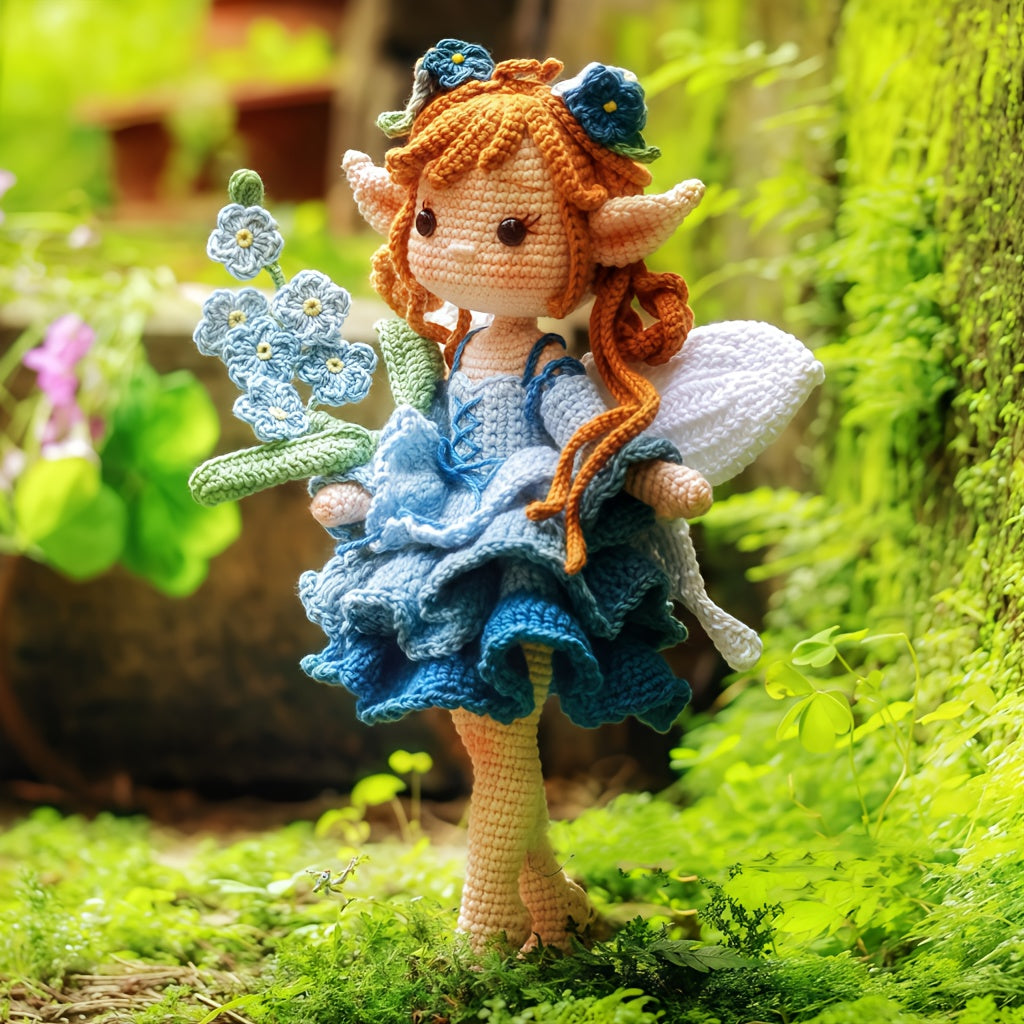 1pc/set, beginner's DIY crochet set, fairy girl holding blue flowers, DIY crochet materials include yarn and hooks, complete DIY handicraft set with crochet teaching steps, perfect for home decoration and gifts, suitable for experienced crochet enthusiast